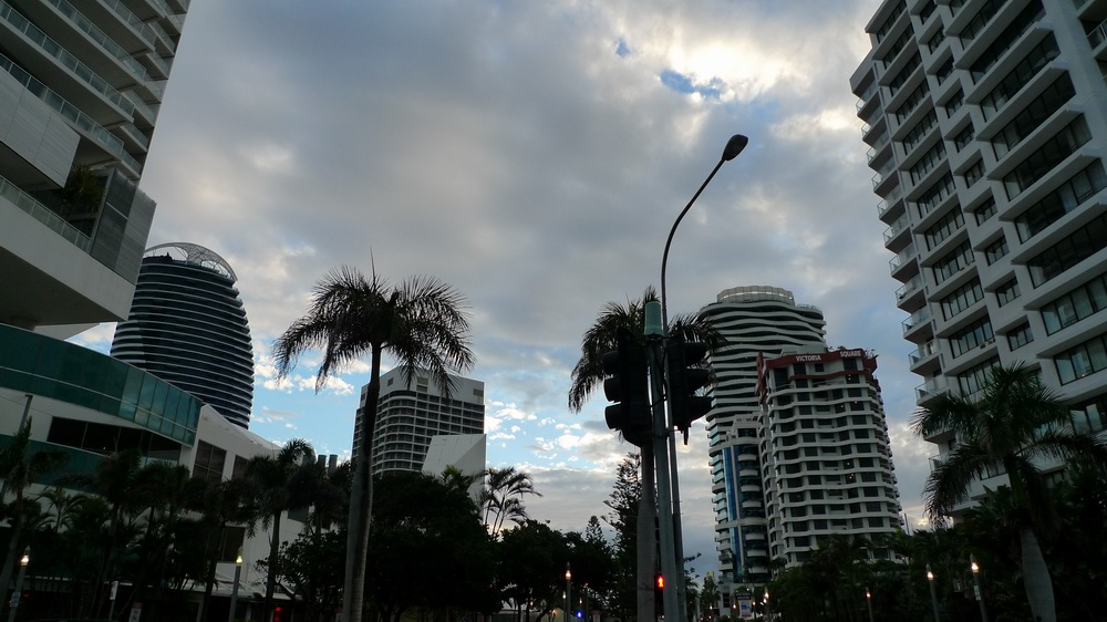 “外國的太陽特別大”,于是晚霞下的建筑也特別燦爛。