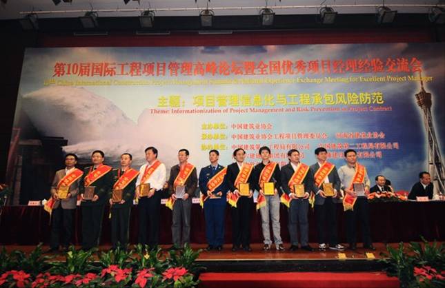 2011年10月23日-24日,第十屆國(guó)際工程項(xiàng)目管理高峰論壇暨全國(guó)優(yōu)秀項(xiàng)目經(jīng)理經(jīng)驗(yàn)交流會(huì)在千年古都、牡丹花城洛陽隆重舉行。全國(guó)各省、自治區(qū)、直轄市建筑業(yè)協(xié)會(huì)(聯(lián)合會(huì))以及各行業(yè)協(xié)會(huì),建筑業(yè)企業(yè),工程項(xiàng)目經(jīng)理等各方代表,中建協(xié)工程項(xiàng)目管理委員會(huì)理事共500余人參會(huì)。我集團(tuán)公司第一房建公司總經(jīng)理項(xiàng)修國(guó)同志喜獲2010年度全國(guó)建筑業(yè)企業(yè)優(yōu)秀項(xiàng)目經(jīng)理,并參加了此次論壇。
