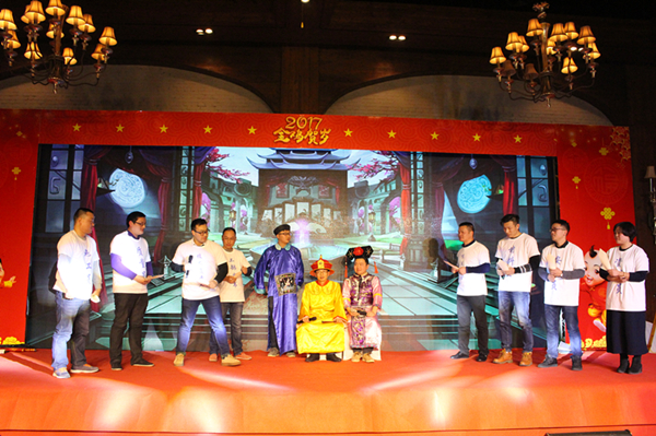 在公司2017年迎春晚宴上,工程部通過大型歌劇《儲秀宮》,項目各個管理人員詼諧的角色反串加上緊切工地實際生活的歌曲串燒,以古現代藝術的形式帶領我們穿越歷史的長河,充分展示了充滿激情而又緊張的工地生活,但更多地是體現了工程建設的艱辛和建設者的默默奮斗,以情感人,煥發激情,走近員工、貼近員工、歌頌員工。
