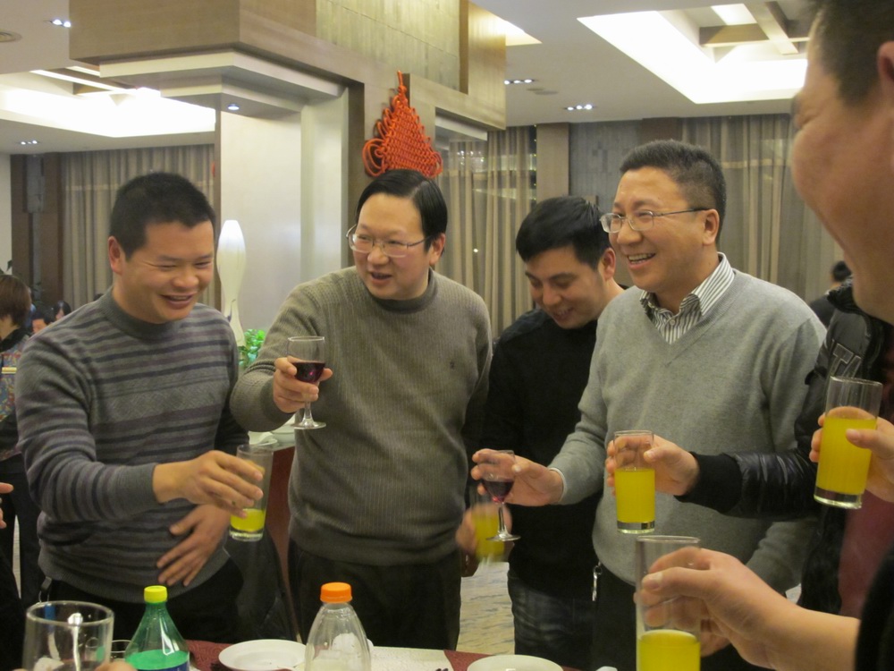 開宴后,建設局領導和公司領導端起酒杯來到每張酒桌前,向各位員工敬酒,對大家一年來的辛勤工作表示感謝,員工們也一一站起來,舉杯回敬。與此同時,各個部門的工作人員也紛紛端起酒杯,向其他部門員工敬酒,感謝他們對自己部門工作的支持和配合。年夜飯成了公司員工互相交流、增進感情的一個很好平臺,大家互敬一杯酒,共敘濃濃情。