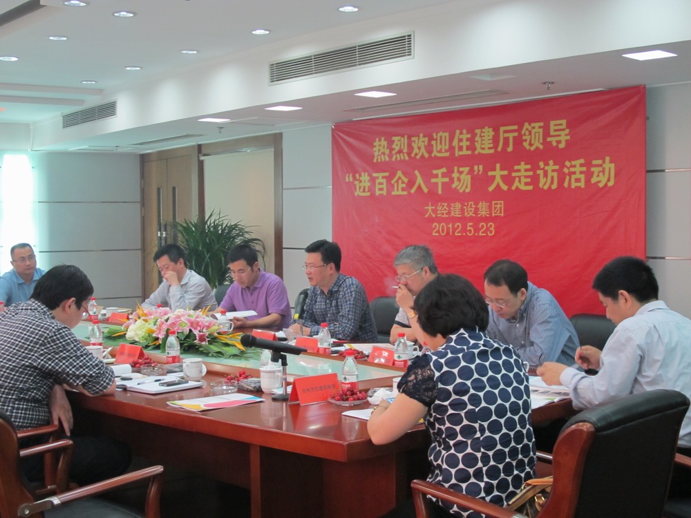 會議在熱烈的討論氣氛中展開。首先,集團領導匯報企業的經營現況、經營特點、發展計劃以及目前企業經營活動中遇到的問題。調研組領導對集團在激烈的競爭環境下仍取得較快的發展表示贊賞,針對集團反映的企業發展、資質升級、工程創優、發展環境和人才培育等各方面問題,一一予以解答。勉勵大經集團要明確發展規劃,依靠體制創新激發發展潛力,依靠科技創新提高核心競爭力,依靠規模經營提高效益,加快發展步伐,努力做大做強做優。