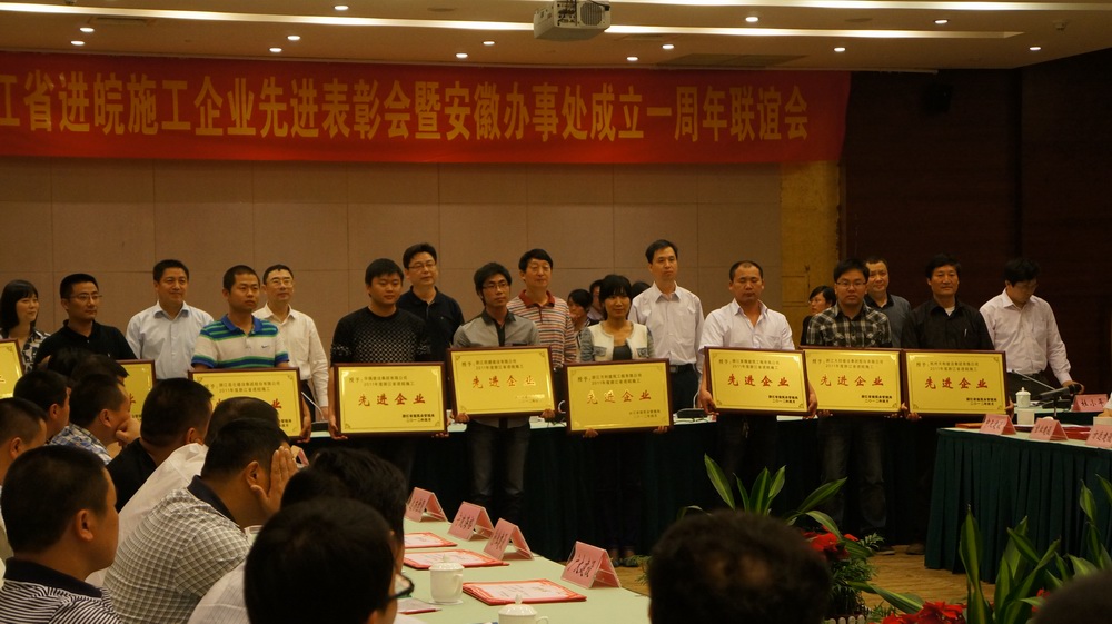 會(huì)議中,各級(jí)領(lǐng)導(dǎo)充分肯定浙江省進(jìn)皖施工企業(yè)取得的成績,清醒分析出浙江省施工企業(yè)出省施工面臨的問題以及進(jìn)一步開創(chuàng)浙江省建筑業(yè)“走出去”發(fā)展新局面的措施。在企業(yè)交流會(huì)上,我公司榮獲“2011年浙江省進(jìn)皖企業(yè)先進(jìn)企業(yè)”,其中王偉堅(jiān)同志獲得“2011年浙江省進(jìn)皖企業(yè)先進(jìn)個(gè)人”。浙江大經(jīng)建設(shè)集團(tuán)股份有限公司得到浙江省建筑業(yè)管理局吳偉民副局長的充分肯定,是浙江省801家進(jìn)皖建筑業(yè)企業(yè)中超10億元的七家單位之一,是浙江省進(jìn)皖建筑大軍的主力軍。