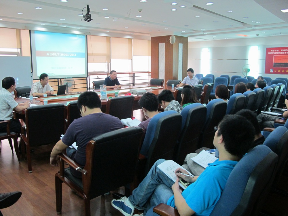 本次學習培訓特邀請認證公司資深注冊審核員老師來講解,通過PPT的形式,系統并深入淺出地講解了新標準GB/T 28001-2011《職業健康安全管理體系要求》和GB/T 50430-2007《工程建設施工企業質量管理規范》。最后他建議公司要根據其新標準、新思路、新方法,充分結合公司實際模式和項目需求,拓寬思路進行創新;通過不斷篩選、不斷調整、不斷改進,既要符合新標準的體系,又要融合專業的特點,形成一整套結構科學合理、內容全面完整、語言通俗易懂、既有指導意義又有可操作性的管理體系文件。