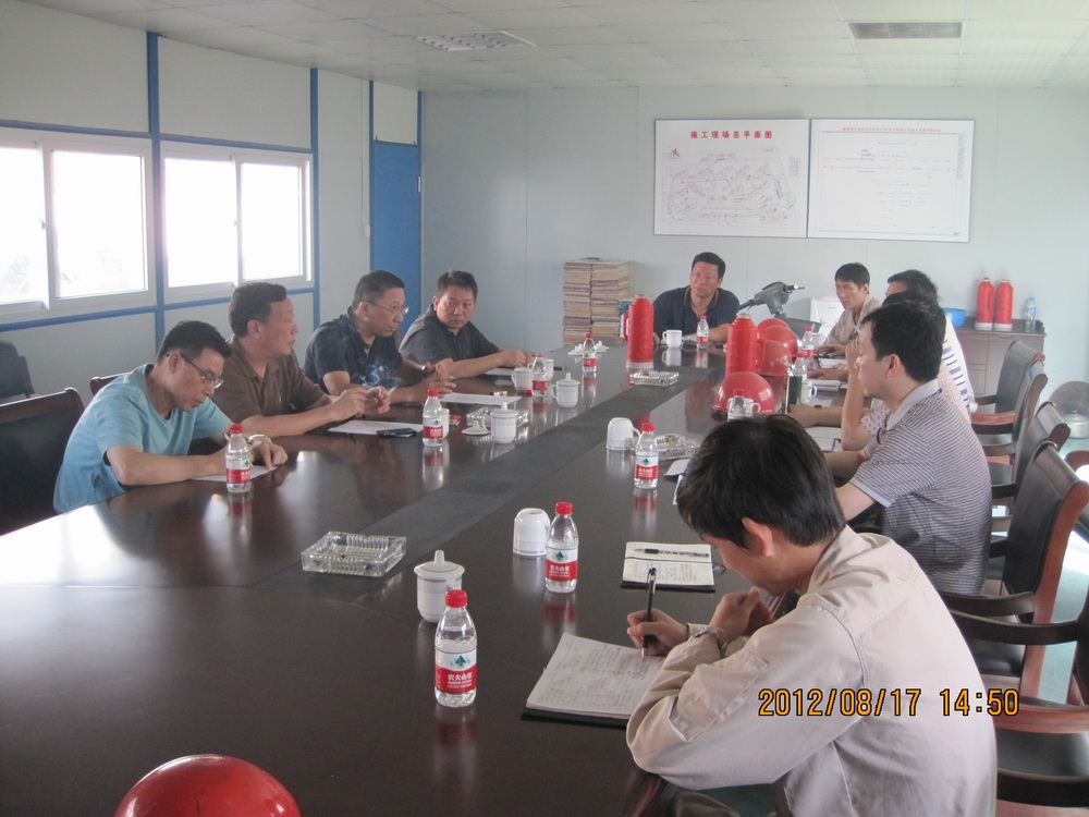 當天在工地會議室召集了分公司負責人與項目負責人等相關人員,商討后續管理工作。該工程項目經理潘力君首先感謝集團公司的關懷與厚愛,并對該項目各方面情況作了一一匯報,期盼集團公司能出面協調該工程存在的一些實際困難。會上,董事長李建強對該工程質量、安全和進度等各方面情況進行了肯定,提到目前該工程已進入后續施工階段,對安全工作切忌放松管理,尤其對高空拋物與高處墜落等容易出現安全事故的重點領域進行防控與落實,并針對目前該項目所存在的實際困難公司會予以協調解決。最后,他希望大家再接再厲,圓滿順利完成該項目的總目標。