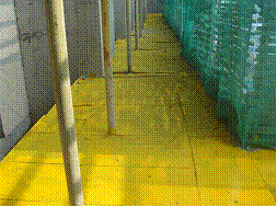 6、施工升降機平臺為防滑鋼板鋪設,兩側采用模板剛性防護。