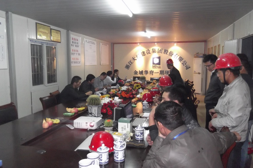 專家組在聽取項目經理工程概況的匯報后,分組對施工現場和職工生活區進行了認真細致的檢查,主要就主體結構、安全防護、施工消防設施、大型機械設備、臨時用電、職工生活區、民工學校、文明施工措施等方面進行了專項檢查,并核查了工程安全臺帳,對照國家和行業的相關標準,對每項檢查實施評分。最后,專家組根據檢查的反饋情況,對大經公司所做的工作給予一致好評,并順利通過了“安徽省質量安全標準化示范小區”的驗收。