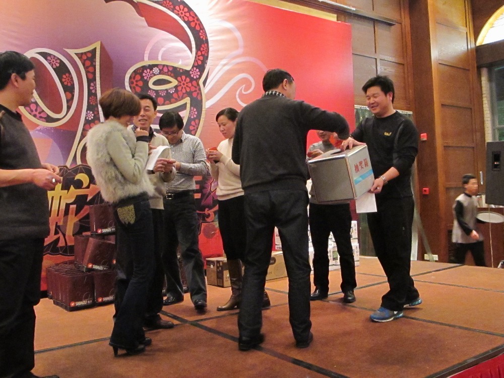 席間大家相談甚歡,觥籌交錯間熱鬧非凡。除了豐盛的美食,此次晚宴還保留了傳統項目——“神秘大抽獎”活動。與往年不同的是,這次的“神秘大抽獎”活動除了設置三等獎六十個名額、二等獎十個名額、一等獎五個名額外,還特別增設了兩名特等獎,獎品為蘋果平板電腦。最后,項目經理張閑輝和工程部的吳杰喜獲特等獎。