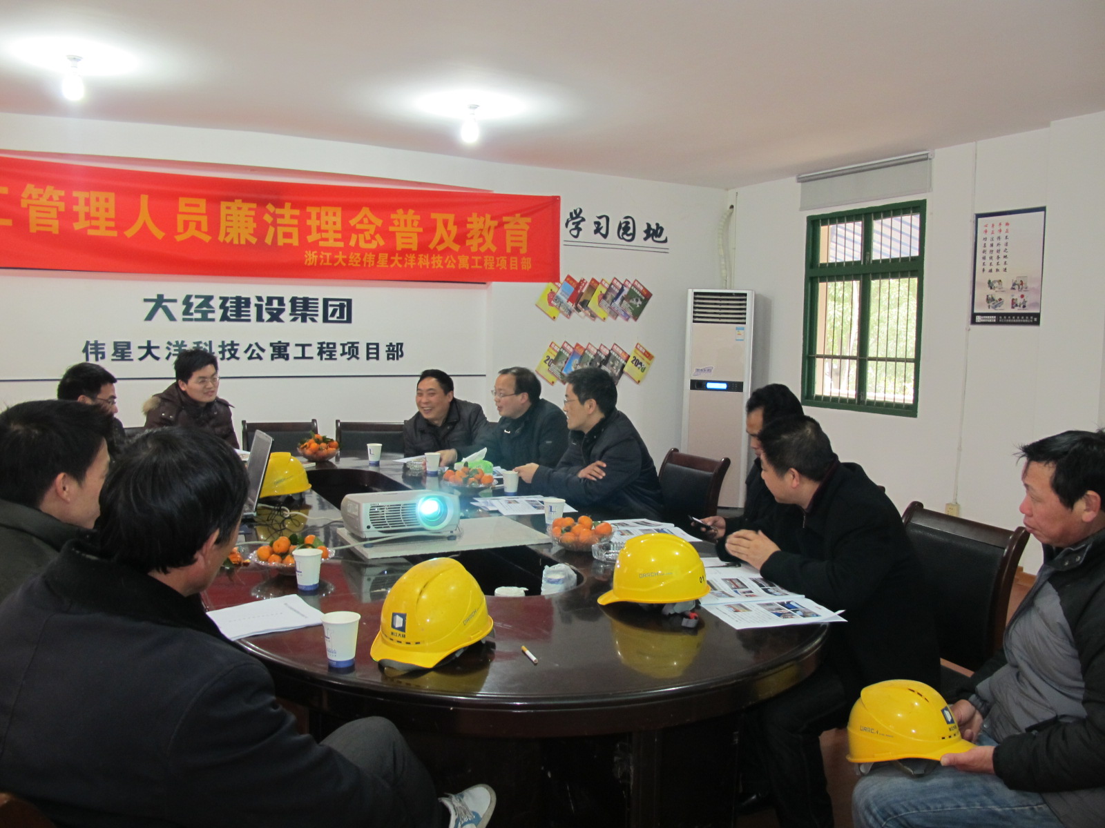 2011年1月18日,臺(tái)州市建設(shè)規(guī)劃局辦公室副主任傅定軍、臨海市建設(shè)規(guī)劃局主任許修建等一行六人到我集團(tuán)公司施工的臨海市大洋科技公寓工程進(jìn)行廉政建設(shè)檢查指導(dǎo),檢查組領(lǐng)導(dǎo)看到該工程施工圍墻上美觀的廉潔文化宣傳圖片、圖文并茂的宣傳窗、內(nèi)容豐富的廉潔文化專(zhuān)欄,設(shè)施齊全的廉潔文化活動(dòng)室和各種各樣的廉政書(shū)籍、影像資料時(shí),給予了高度評(píng)價(jià),認(rèn)為我集團(tuán)公司已經(jīng)認(rèn)識(shí)到廉政文化建設(shè)的重要性,并主動(dòng)結(jié)合安全生產(chǎn)等活動(dòng)開(kāi)展廉政宣傳教育等活動(dòng),軟硬件結(jié)合,內(nèi)外并存,實(shí)施有廣度、有深度。