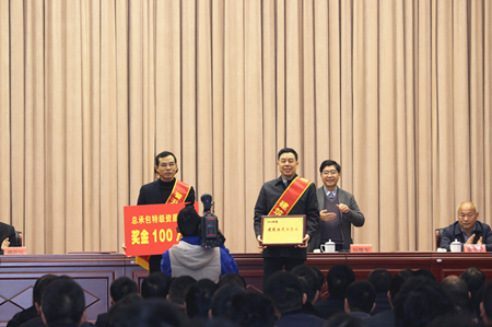 胡新民主持會議并宣讀了有關(guān)表彰文件,與會領(lǐng)導為受表彰的先進集體和先進個人頒獎。浙江大經(jīng)建設集團股份有限公司董事長邵全臻獲得“2018年度臨海市功勛企業(yè)家”稱號,浙江大經(jīng)建設集團股份有限公司獲得“首次晉升總承包特級資質(zhì)企業(yè)”和“2018年度臨海市建筑業(yè)行業(yè)龍頭企業(yè)”榮譽,楊高、李洋洋、王國棉、金望哲被評為“2018年度臨海市建筑業(yè)十佳建造師”,黃愛平、馮權(quán)、鄭先學被評為“2018年度臨海市建筑業(yè)十佳市場開拓能手”。