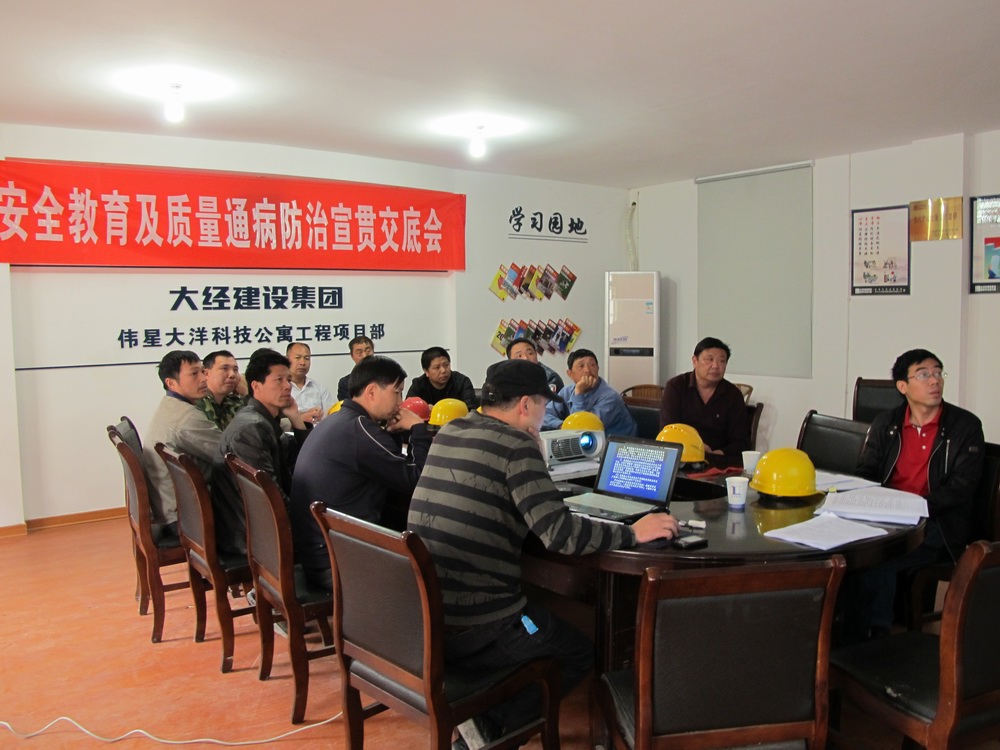 根據省、市各相關文件要求,2011年5月24日至26日工程部組織對臨海在建工程各項目部相關人員進行了現場安全教育及質量通病防治宣貫交底。重點宣貫了臺建規〔2011〕136號《關于加強建筑企業和施工現場安全生產基礎工作的若干規定》、臺建規[2011]151號《臺州市住宅工程質量通病防治活動方案》和臺建規[2011]202號《臺州市住宅工程質量通病防治導則》等。要求各項目部以“安全責任、重在落實”為主題,積極開展“安全生產月”活動,并建立健全建筑施工現場安全生產保障體系,進一步嚴格安全生產管理,扎實落實施工現場安全生產28條基本規定,建立堅實的施工現場安全生產保障體系。要求以“保障民生,建設群眾滿意住宅”為主題明確施工單位的責任和義務,認真研讀設計文件,配備相關圖集。施工組織設計編制應明確通病防治的目標和工作措施,編制通病防治專項施工方案,施工過程中嚴格按已經批準的方案實施,并根據工程進度做好相應部位通病防治的技術交底工作。做好原材料、構配件的報驗工作。建立、健全施工質量的檢驗制度,嚴格工序管理,作好隱蔽工程的質量檢查和記錄。按要求完成通病防治相關的各類功能性檢驗項目,做好通病防治的技術資料的收集、整理工作。要求各項目部根據墻體裂縫防治技術措施、鋼筋混凝土現澆板裂縫防治技術措施、外墻滲漏防治技術措施、樓地面滲漏防治技術措施、門窗滲漏防治技術措施、屋面滲漏防治技術措施,項目部要通過開展技術培訓、講座、交底等活動,對管理人員、技術人員和一線工人進行培訓,做到人人明確職責、事事不忘通病、條條得到落實。