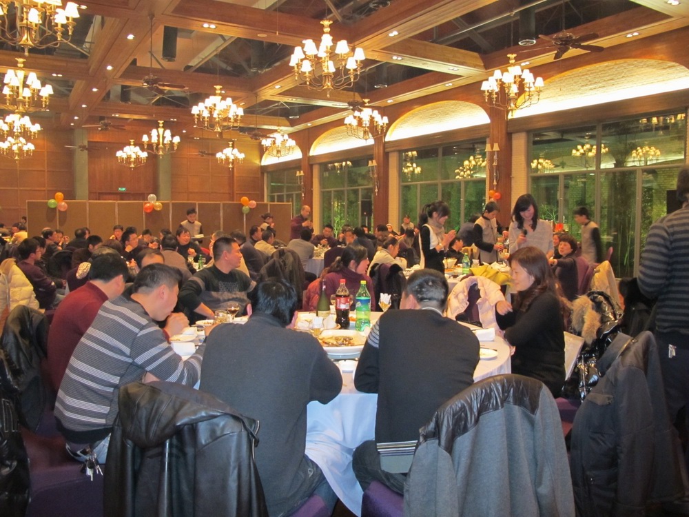 用餐正式開始后,席間歡聲笑語,碰杯不斷,同事之間相談甚歡,領導結伴逐桌敬酒,現(xiàn)場氣氛相當熱鬧。
